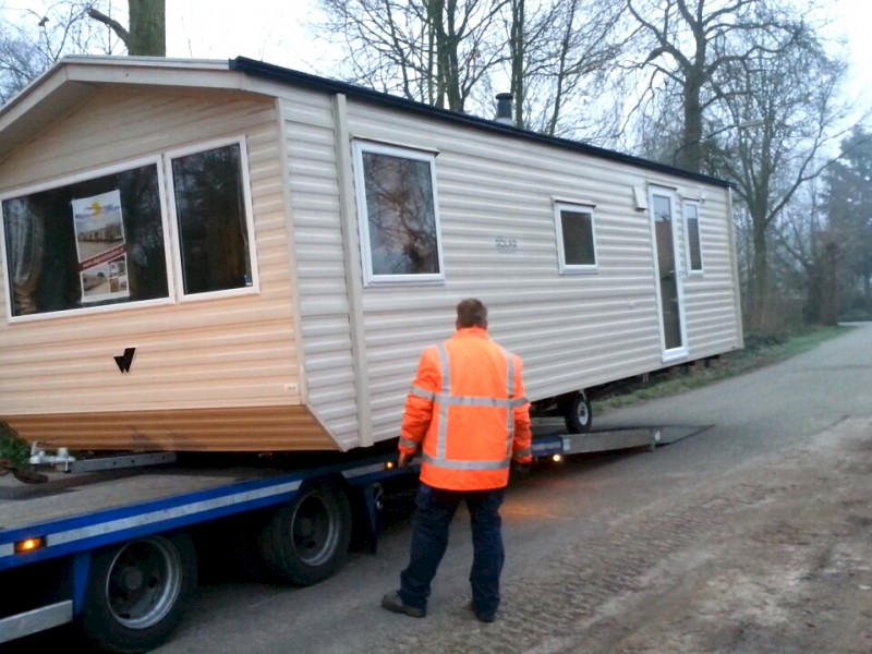 Plaatsing op 'Spaendershorst' op 23-01-2015. Op vrijdag om 8:00 kwam de wagen met onze caravan aangereden. Even de situatie verkend en toen gingen de mannen aan het werk. Rond 9:30 stond de caravan op zijn plek en kon het stellen beginnen. Ook dat verliep snel en uiterst deskundig. Hulde aan de mannen die een en ander heel goed en snel geregeld hebben. Wij zijn erg tevreden over onze caravan en over de afwikkeling door De Bergjes!! Wij kunnen aan het werk voor de verdere afwerking!