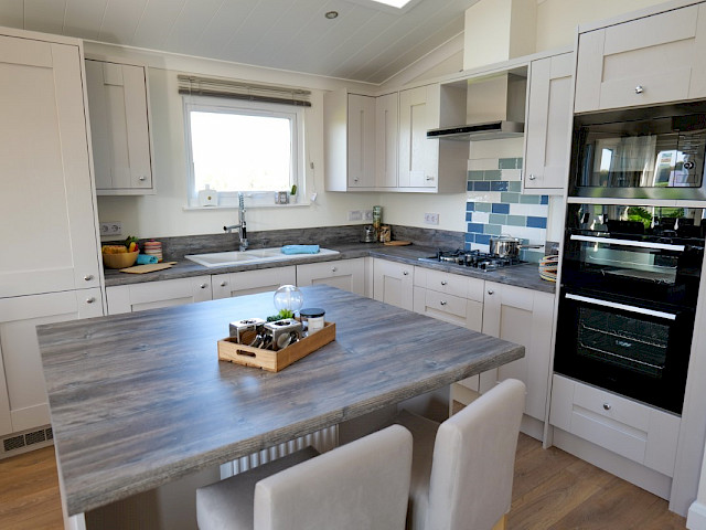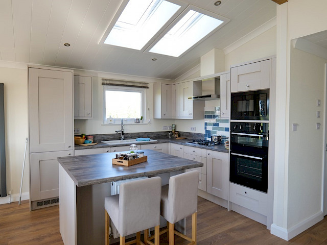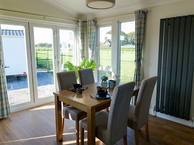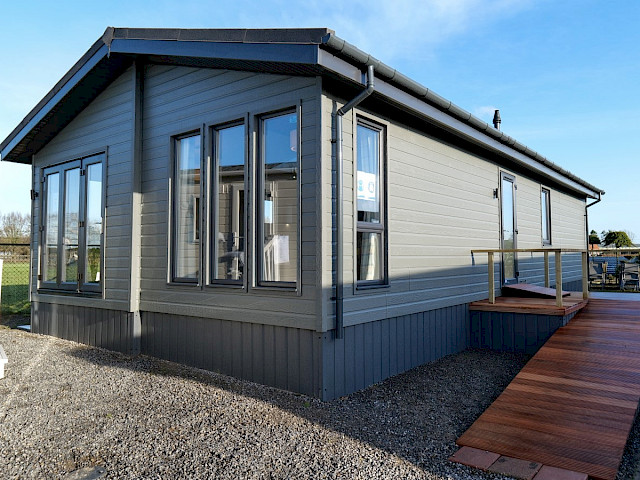 Le Willerby Acorn est un chalet double spacieux de couleur anthracite. Il dispose d'une cuisine avec îlot, et d'un salon et d'une salle à manger spacieux avec de grandes fenêtres pour une vue optimale sur l'extérieur. En outre, ce chalet dispose d'une chambre à coucher, d'une salle de bains attenante avec un espace supplémentaire pour une machine à laver, d'une deuxième pièce (pour dormir) et de toilettes séparées. Les passages sont très spacieux de sorte que ce chalet peut également être utilisé comme maison de soins.