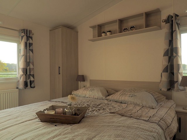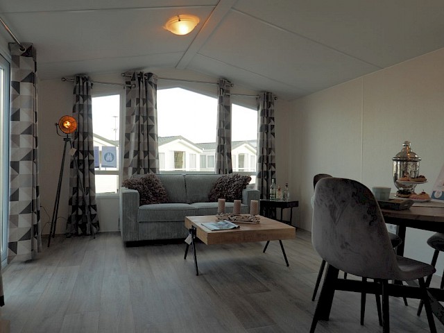 Le Bergline Lodge a été soigneusement sélectionné et est extrêmement populaire en raison de son excellent rapport qualité/prix ! Les grandes portes de terrasse et les grandes fenêtres devant le mobil-home créent beaucoup de lumière. Le Bergline Lodge se caractérise par les trappes modernes à l'avant du mobil-home !