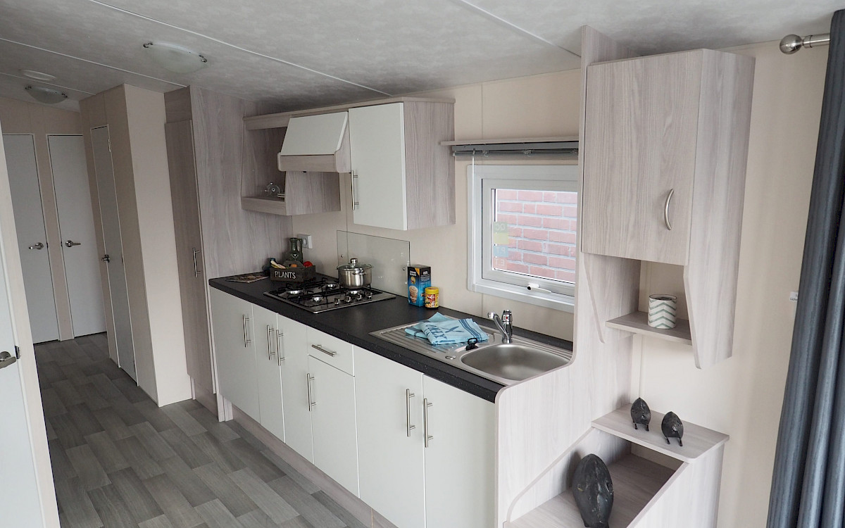 De Bergjes Serie Special Bergline Lodge a été soigneusement sélectionné et est extrêmement populaire en raison de son excellent rapport qualité/prix ! Les grandes portes de terrasse et les grandes fenêtres devant le mobil-home créent beaucoup de lumière. Le Bergline Lodge se caractérise par les trappes modernes à l'avant du mobil-home !