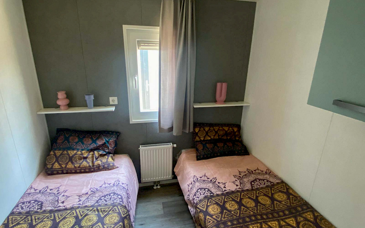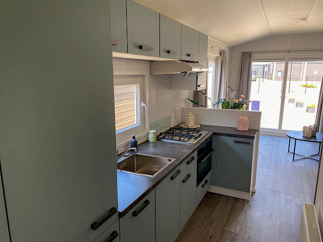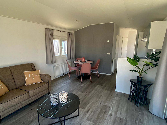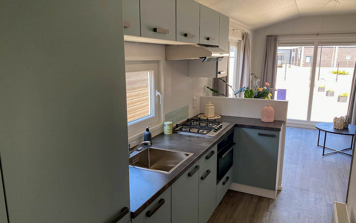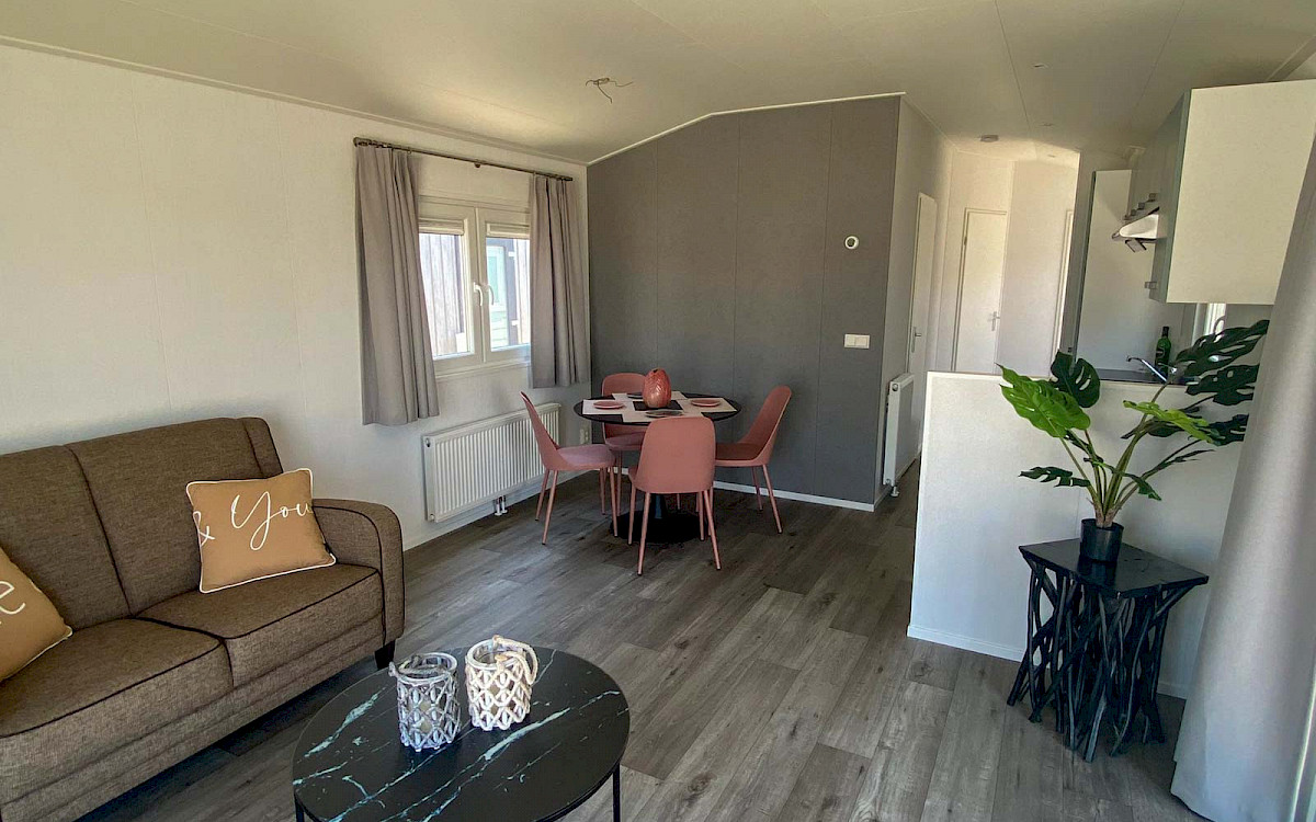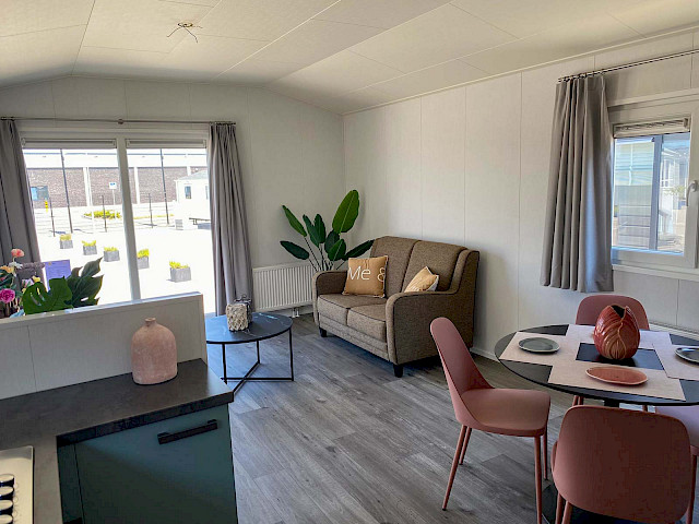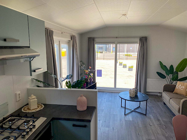 De Bergjes Everest est légèrement différent des modèles standard car ses fenêtres sont décentrées. L'espace dans le salon et l'aspect frais sont accompagnés de nombreux détails luxueux dans la cuisine ; pensez à un lave-vaisselle intégré, une cuisinière de luxe avec four/grill, et un petit bar. Les magnifiques murs d'accentuation dans le chalet le rendent complet !