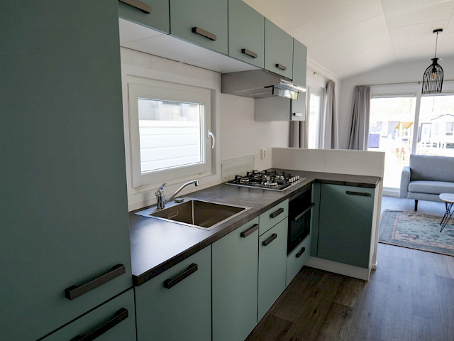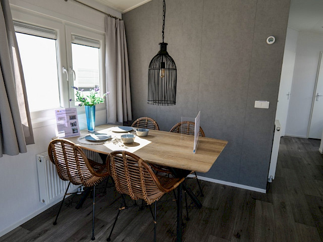 De Bergjes Everest est légèrement différent des modèles standard car ses fenêtres sont décentrées. L'espace dans le salon et l'aspect frais sont accompagnés de nombreux détails luxueux dans la cuisine ; pensez à un lave-vaisselle intégré, une cuisinière de luxe avec four/grill, et un petit bar. Les magnifiques murs d'accentuation dans le chalet le rendent complet !