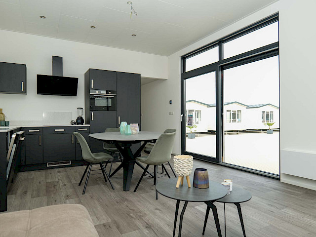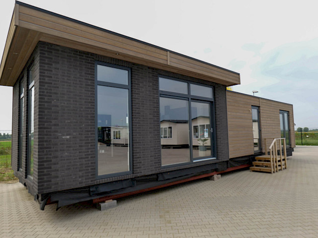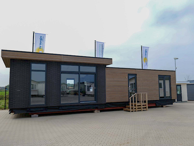 Le MZ Silvretta est entièrement électrique et présente un aspect moderne grâce à son toit en quinconce et à sa façade extérieure en briques. Le salon spacieux est doté d'une cuisine d'angle ouverte, de grandes fenêtres et d'un plafond surélevé qui, ensemble, créent beaucoup de lumière et une sensation d'espace. La chambre et la salle de bains sont situées dans la partie inférieure de la maison. De plus, ce chalet dispose d'une porte coulissante dans le salon, de portes-fenêtres dans la chambre, d'une grande buanderie et d'un placard pour la machine à laver.