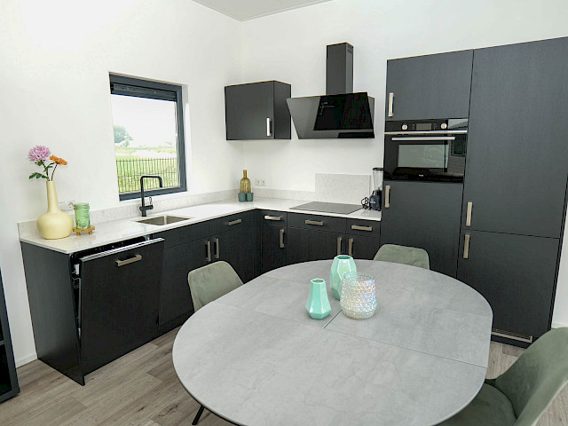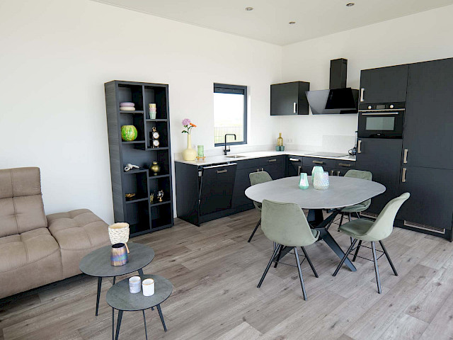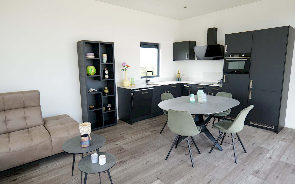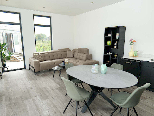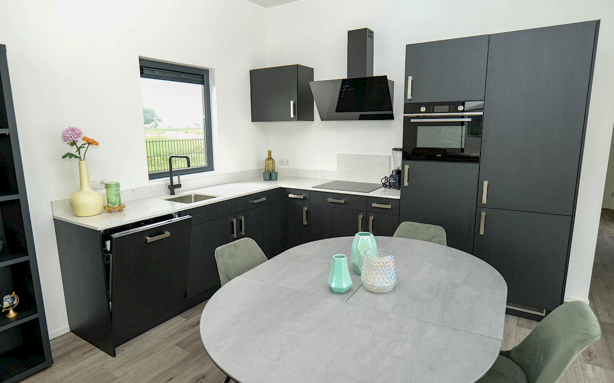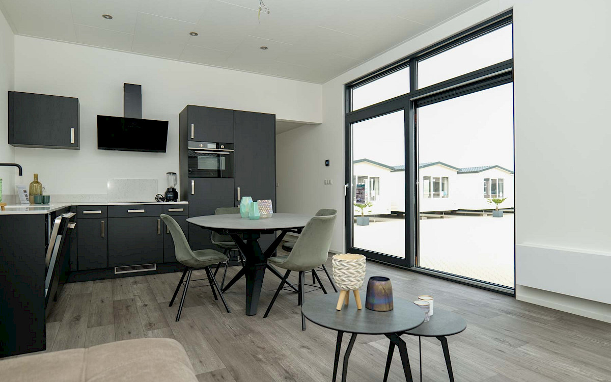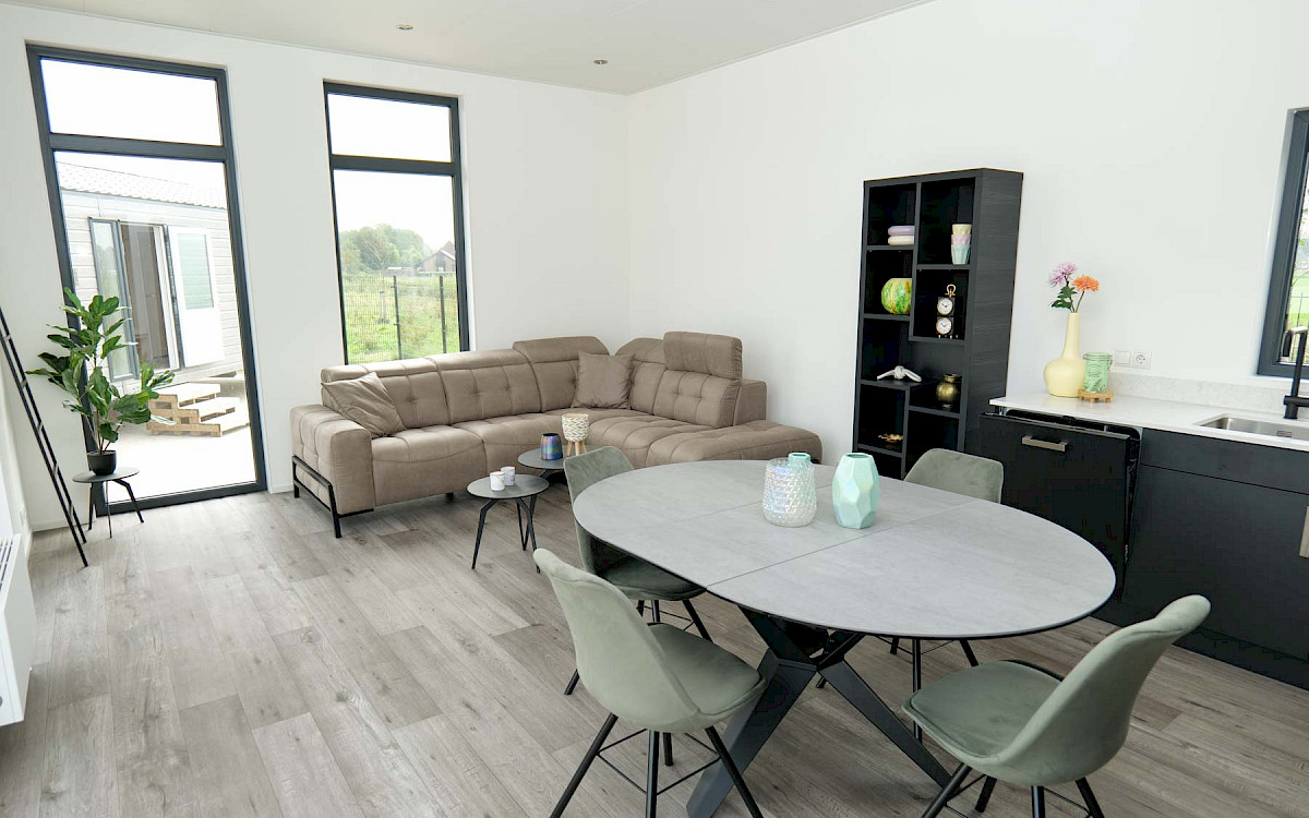Vous pouvez personnaliser ce chalet à votre guise en choisissant, par exemple, une cuisine de couleur différente ou un plan de travail différent. Vous êtes également libre de choisir un autre sol ou un autre revêtement extérieur. Vous êtes curieux ? N'hésitez pas à visiter notre site d'exposition et à profiter de ce chalet de rêve dès 3 mois.