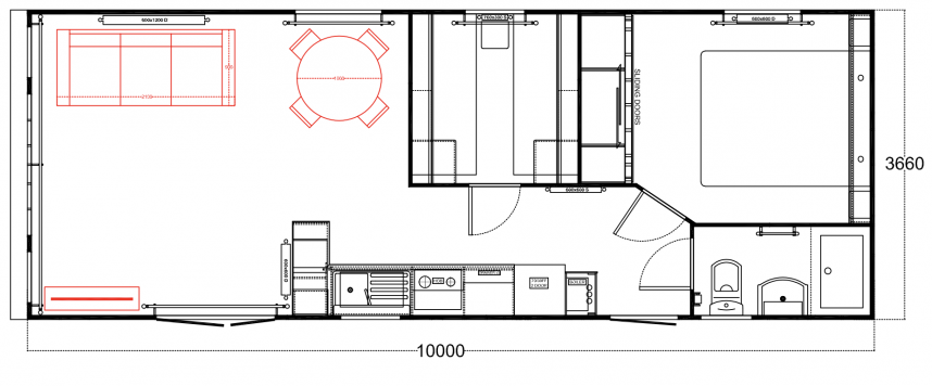 Ce magnifique mobil-home offre une entrée spacieuse où vous pouvez accrocher manteaux et sacs sans effort. L'entrée généreuse donne immédiatement une impression d'espace et d'hospitalité, vous faisant vous sentir comme chez vous. L'Ocean Super Plus dispose d'une cuisine moderne en forme de U, équipée d'une cuisinière, d'une hotte aspirante, d'un réfrigérateur et d'un congélateur encastrés. Il y a même de la place pour un micro-ondes et la possibilité d'ajouter un lave-vaisselle, de sorte que vous serez entièrement équipé.