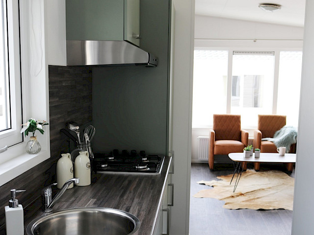 Le Duinhuis est comparable au Sorrento et au Jolie, le Duinhuis dispose cependant d'un toit pupitre par défaut! Cela donne au mobil-home un look très moderne. Vous pouvez composer le Duinhuis entièrement en fonction de vos souhaits et il peut être agrandi grâce aux différentes options. Vous préférez un mobil-home avec un toit plat au lieu d'un toit pupitre, optez dans ce cas pour le De Bergjes Duinhuis.