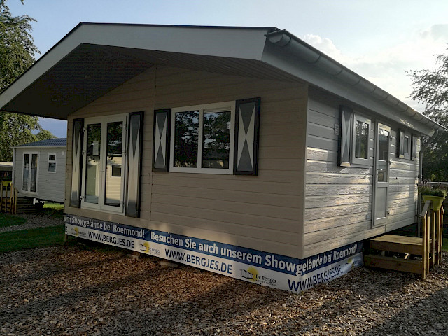 Le Lodge XL, tout comme le Capri Twin, se compose de deux parties. La caractéristique du XL-Lodge est sa disposition unique. Nous pouvons, par exemple, déjà livrer un XL-Lodge à partir d'une surface de 43,5 m2 seulement. Ce double mobil-home peut donc être placé dans presque tous les campings. En plus de l'agencement unique, les volets sabliers zélandais sont également très caractéristiques de ce mobil-home.