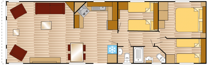 Le modèle Batura dispose de tous les moyens pour des vacances luxueuses et confortables. Le modèle Batura dispose d'un intérieur très spacieux de série, d'un mobilier moderne et de matériaux de haute qualité. Le modèle Batura est très attrayant pour les personnes/familles à la recherche d'une maison de vacances spacieuse et confortable.