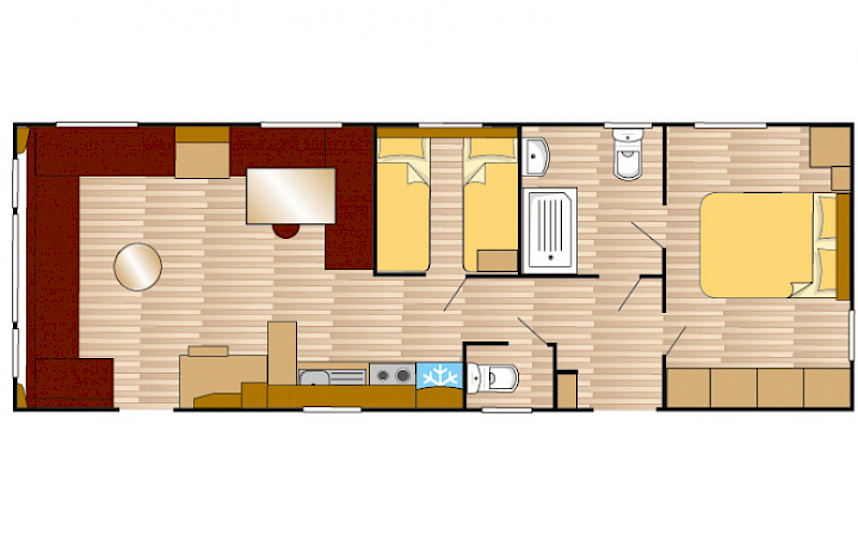 Le Diran est un modèle agréable et compact offrant de nombreuses possibilités de rangement. Ce Diran est maintenant disponible immédiatement à un prix très avantageux ! Curieux de découvrir ce beau mobil-home ? Vous êtes cordialement invité à venir voir ce modèle dans notre showroom.