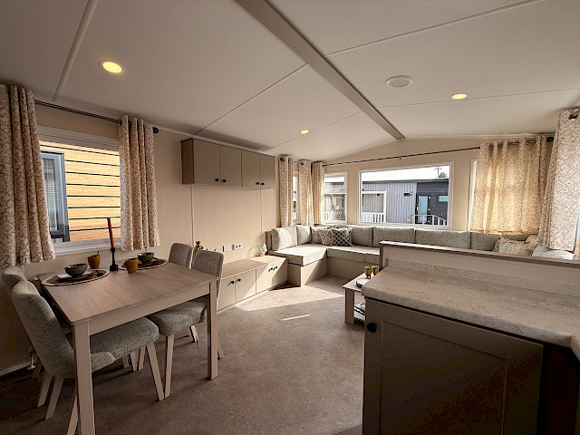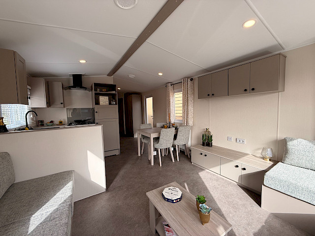 Le Flore est un beau mobil-home à l'allure moderne grâce à son revêtement extérieur clair. En outre, le Flore est assez compact dans ses dimensions, mais offre encore beaucoup d'espace et de luxe à l'intérieur. Vous trouverez un salon confortable avec de nombreux sièges, une belle cuisine en U pour de délicieux repas, 2 chambres à coucher et une belle salle de bain. Curieux de découvrir ce modèle ? N'hésitez pas à vous rendre dans notre agence pour découvrir ce que le Flore a à vous offrir.