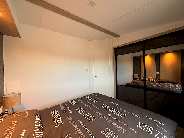 Le mobil-home dispose de deux chambres confortables et d’une salle de bains complète avec une grande cabine de douche.