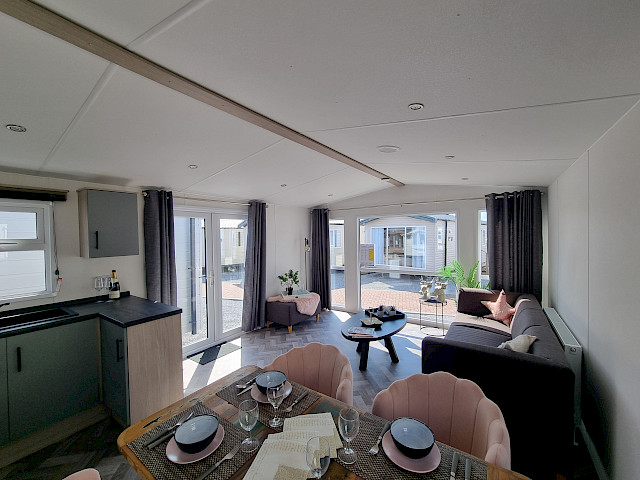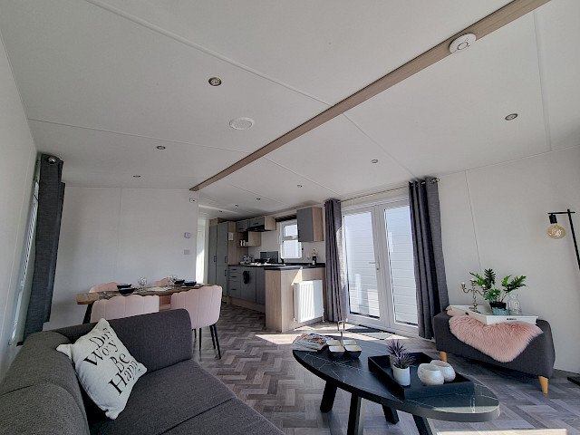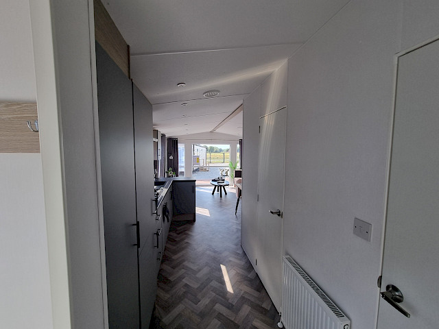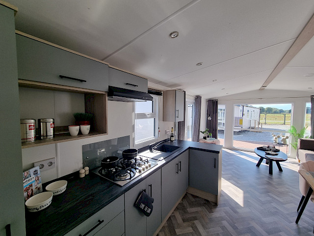 Ce magnifique mobil-home offre une entrée spacieuse où vous pouvez accrocher manteaux et sacs sans effort. L'entrée généreuse donne immédiatement une impression d'espace et d'hospitalité, vous faisant vous sentir comme chez vous. L'Ocean Super Plus dispose d'une cuisine moderne en forme de U, équipée d'une cuisinière, d'une hotte aspirante, d'un réfrigérateur et d'un congélateur encastrés. Il y a même de la place pour un micro-ondes et la possibilité d'ajouter un lave-vaisselle, de sorte que vous serez entièrement équipé.