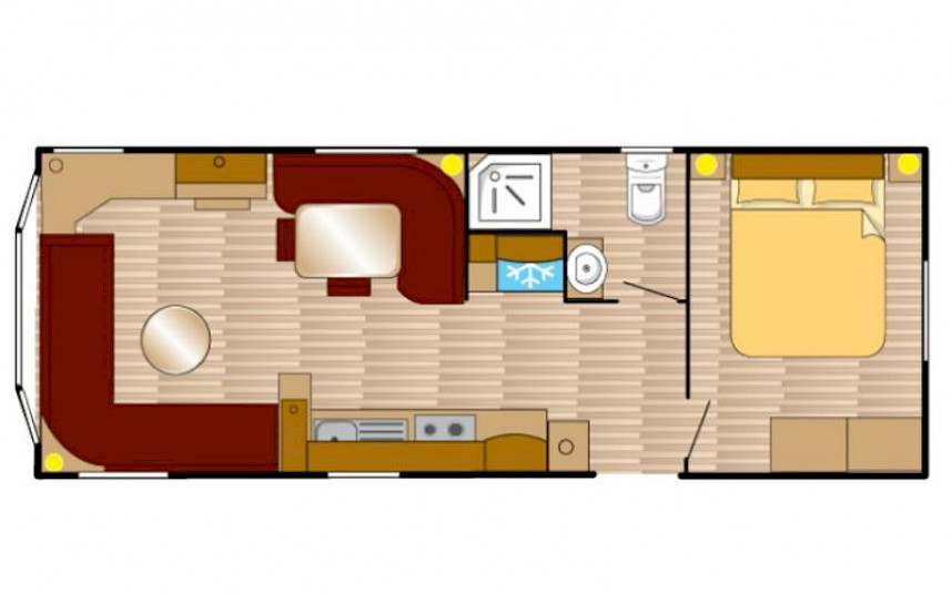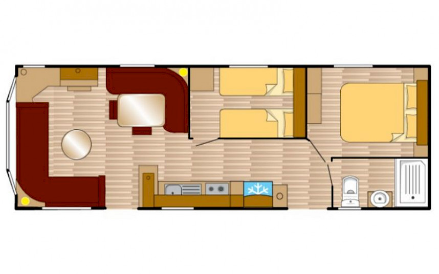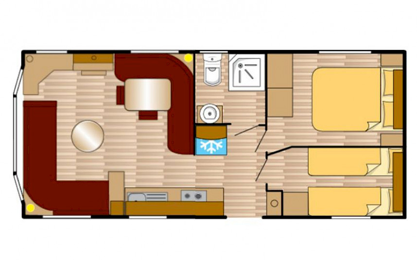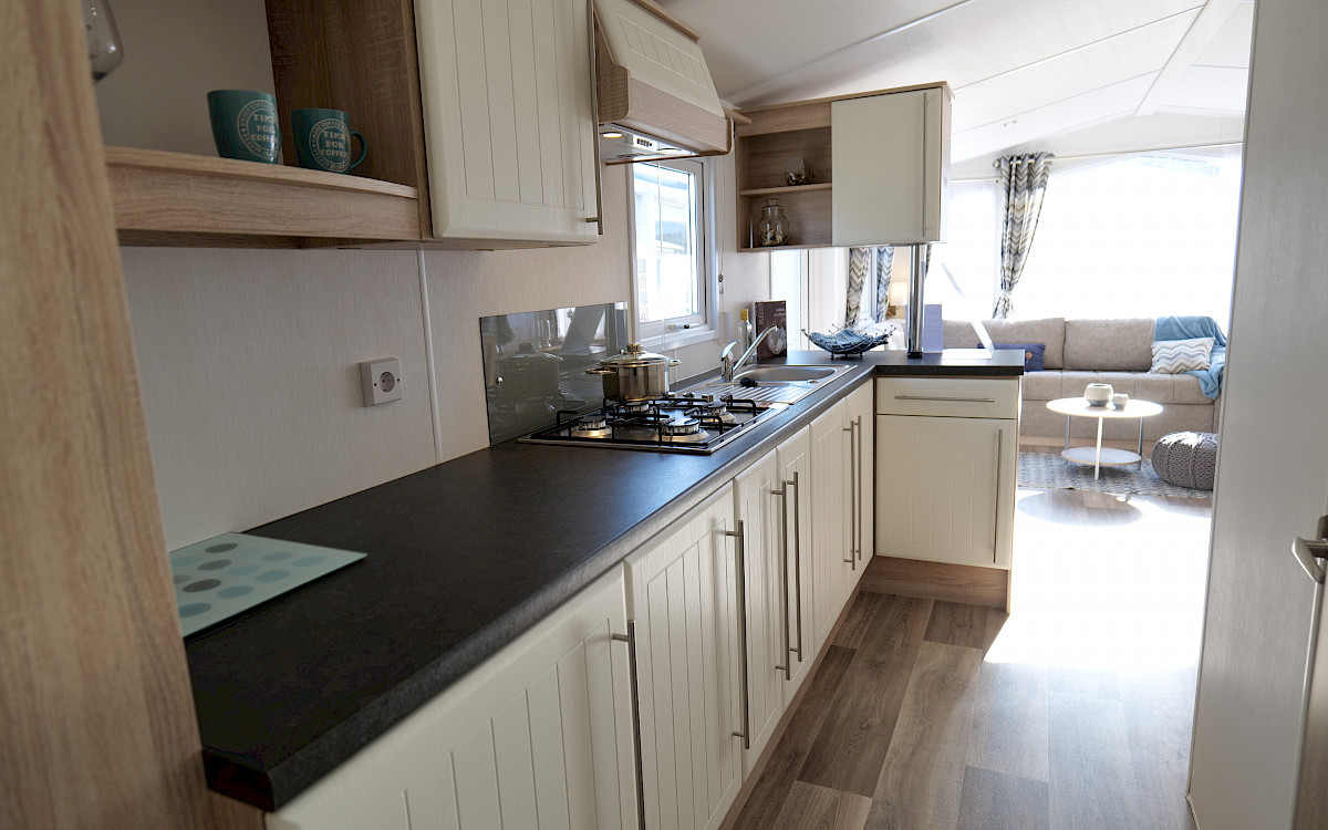 Le modèle Siëra est un mobil-home élégant et caractéristique avec un charme reconnaissable grâce à la forme unique de la baie vitrée à l'avant. De plus, le modèle a Siëra dispose de nombreuses options attrayantes telles qu'un salon entièrement équipé, une cuisine entièrement équipée et une façade extérieure luxueuse. Le modèle Siëra est adapté à la création d'un parfait pour passer des vacances en famille. Le Siera standard dispose d'un poêle Truma dans le salon. Ce modèle est équipé d'un chauffage central (en option)
