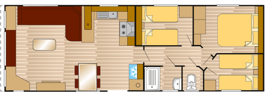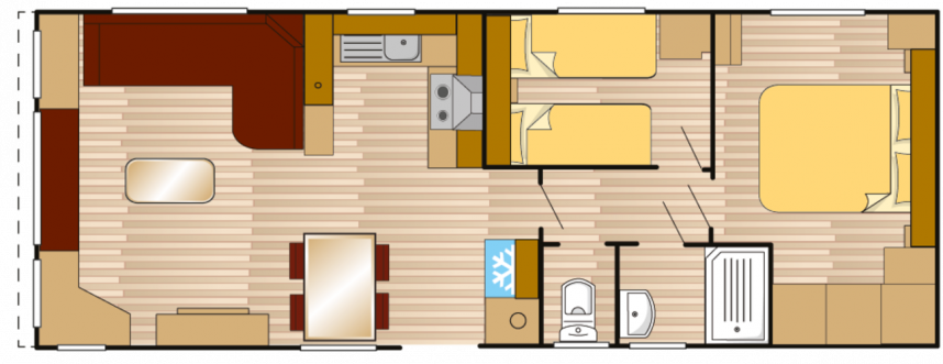 De Bergjes Serie Ultar est un mobile home extrêmement élégant et luxueux. L'Ultar dispose d'un salon spacieux, d'une cuisine en U moderne et d'une gamme d'options de la plus haute qualité.  Ceci peut également être vu dans la ou les chambres à coucher. L'Ultar est un mobil-home très populaire auprès de nombreuses familles !
