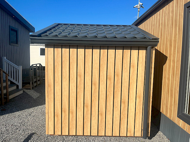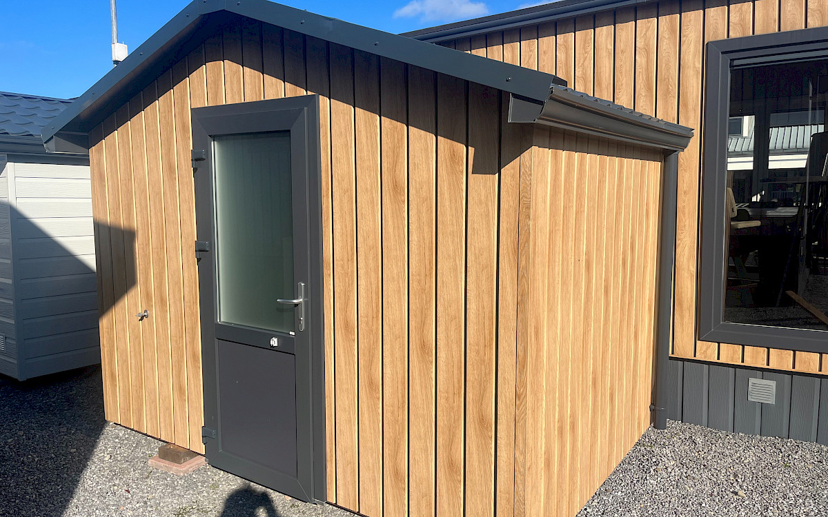Dit tuinhuis van 3x2 meter van De Bergjes is voorzien van dubbel glas, kunststof buitenbekleding en kunststof goten met regenpijpen. Het huisje heeft een spits plafond en is direct leverbaar. Het is een praktische oplossing voor opslag of als extra ruimte in de tuin.