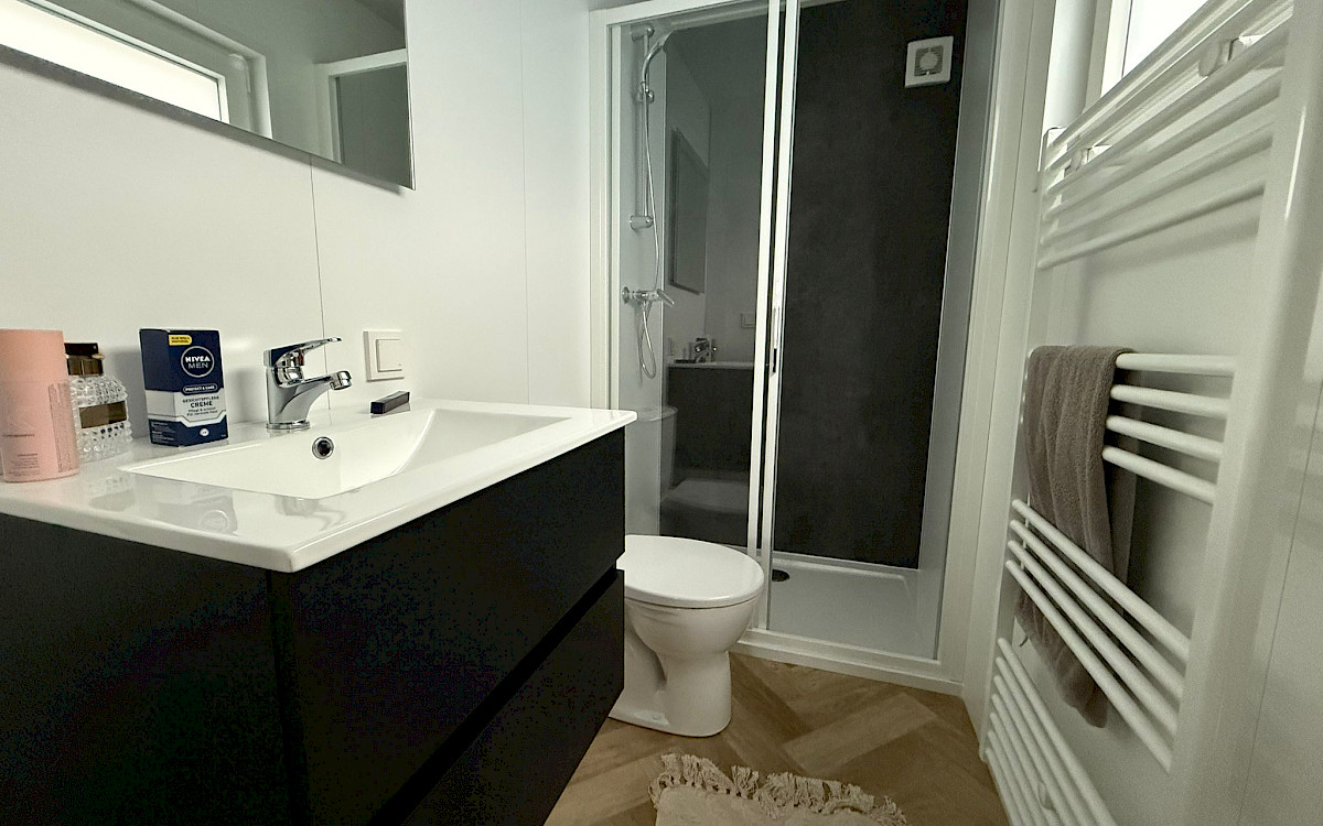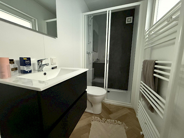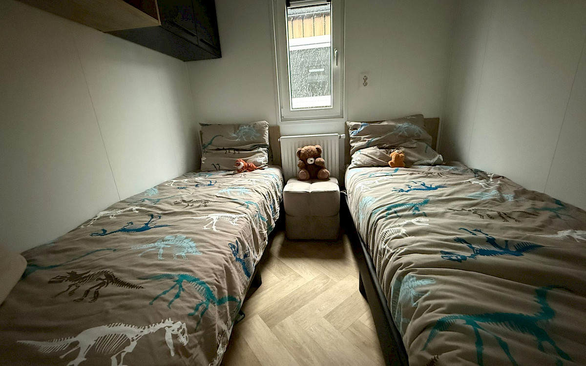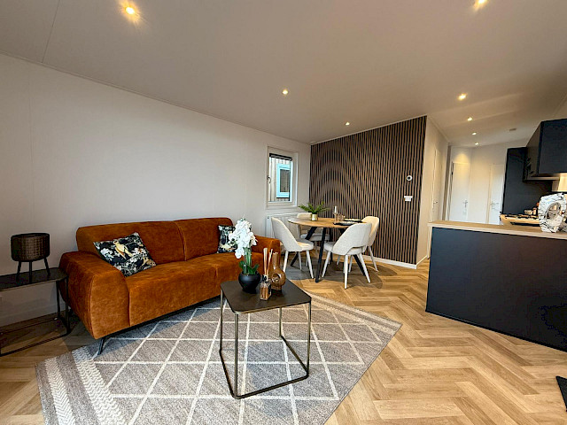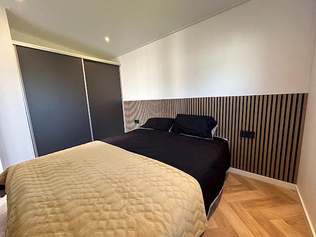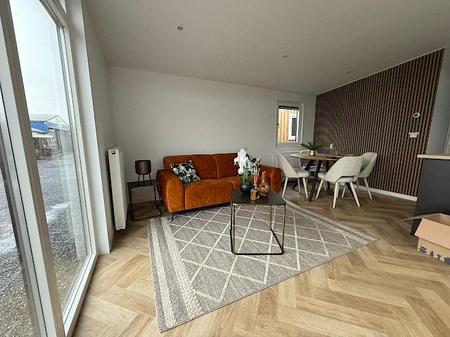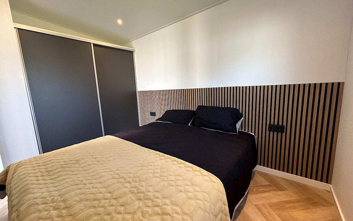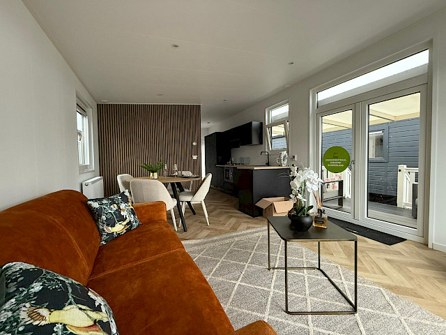 Le Volente Deluxe offre tout ce dont vous avez besoin pour un séjour confortable. Le salon spacieux est équipé d'un sol en vinyle, de grandes portes-fenêtres et d'une prise TV. La cuisine en L est entièrement équipée, avec de nombreux rangements, une plaque de cuisson 4 feux, une hotte aspirante et un réfrigérateur/congélateur intégré. La chambre principale dispose d'un lit double et d'une grande armoire à portes coulissantes. La chambre d'amis/chambre d'enfant dispose de deux lits simples et d'armoires pratiques pour un espace de rangement supplémentaire. La salle de bains moderne est équipée d'un meuble de salle de bains élégant, d'un radiateur design, de toilettes et d'une cabine de douche spacieuse avec un motif de carreaux sur le mur. Le chalet est fini avec un revêtement extérieur en plastique aspect bois, des châssis en plastique, du double vitrage et le chauffage central - un équilibre parfait entre confort et durabilité.