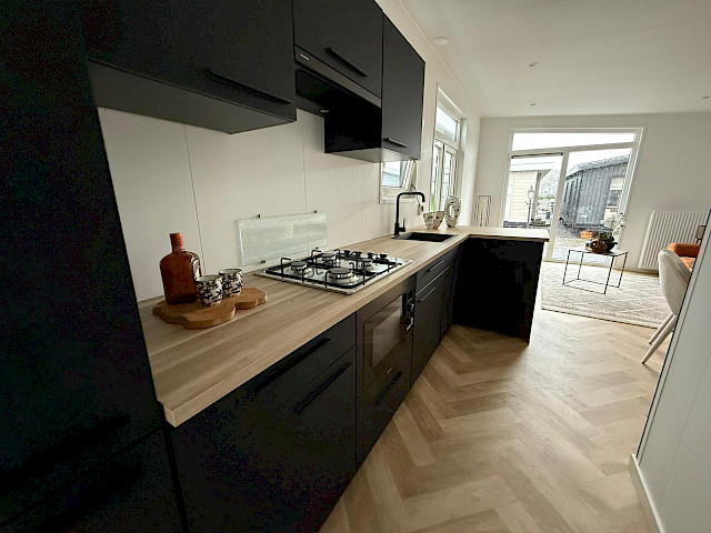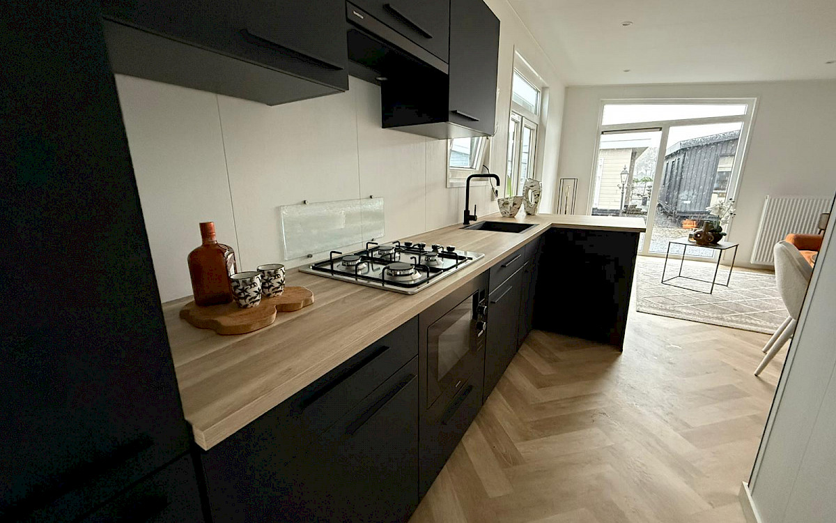 Les images ci-dessus montrent le modèle suivant : 1100 x 400 - 2 chambres. Avec les options suivantes : châssis noirs, gouttières anthracite, bordure noire, cloison à lattes, évier noir et robinet noir. Prix total: €87.323.