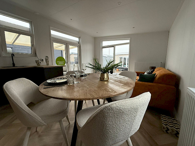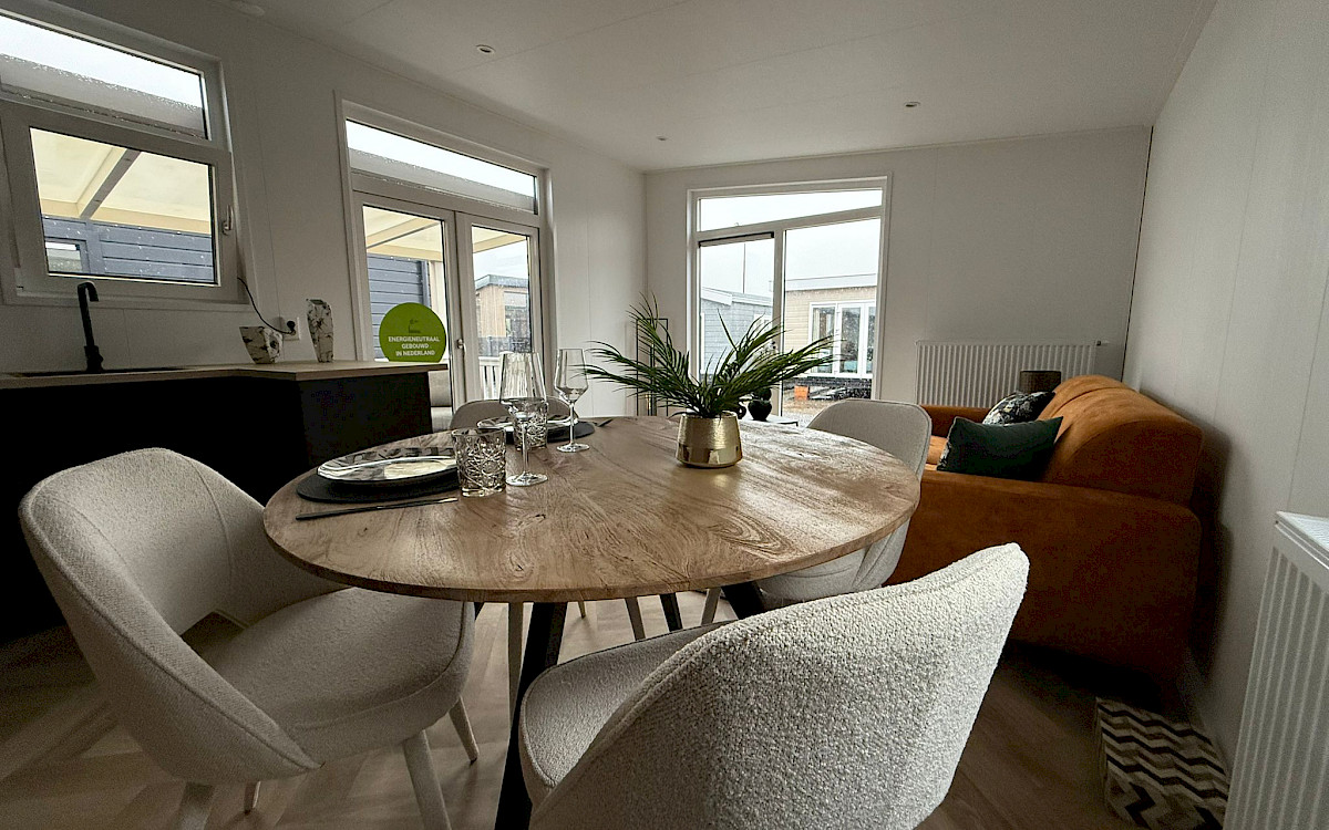 Saviez-vous que ce modèle n'est pas seulement exposé dans nos parcs d'exposition, mais aussi au camping De Boomgaard ? Nous y proposons une formule tout compris : vous achetez le chalet avec un emplacement fixe dans ce camping. Découvrez ici notre offre tout compris au camping De Boomgaard.