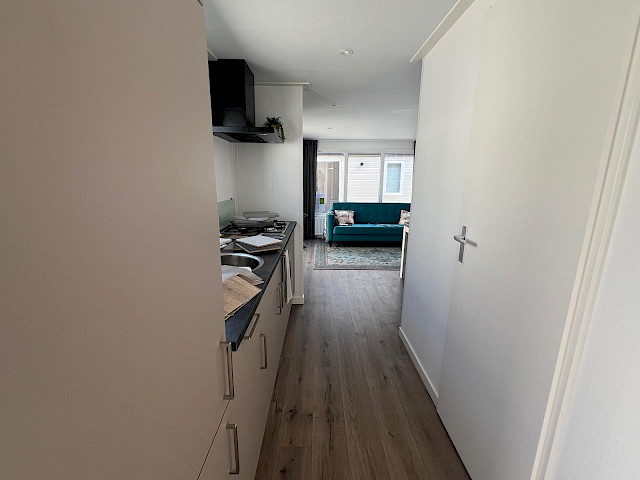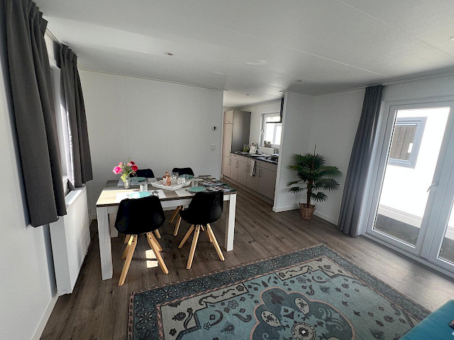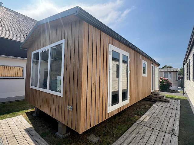 Le Vulture dispose d'une cuisine bien équipée, d'un salon spacieux et confortable avec des portes-fenêtres donnant sur le jardin et, bien sûr, de deux belles chambres et d'une salle de bains. Vous pouvez personnaliser ce modèle à votre guise, par exemple en ajoutant des options de luxe supplémentaires. De plus, le Vulture est un chalet Green Label. Cela signifie qu'il est bien isolé avec des murs extérieurs de 12 cm d'épaisseur, mais aussi qu'il est entièrement équipé électriquement. Ce modèle est également construit dans notre usine entièrement neutre en énergie aux Pays-Bas, ce qui nous permet d'offrir une véritable qualité néerlandaise avec la garantie du prix le plus bas.