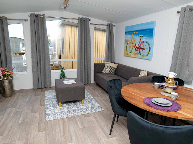 Après les populaires WoodRidge, Volente Special et Rushmore, nous avons ajouté à notre large gamme un nouveau modèle avec un revêtement extérieur luxueux d'aspect bois : le Bergjes Woodline. Un chalet tendance grâce à la combinaison du revêtement extérieur Woodlook avec des châssis de fenêtres anthracite à un prix très attractif. De plus, le Bergjes Woodline est très bien isolé avec des murs de 12 cm d'épaisseur et à l'intérieur vous trouverez tout le luxe dont vous avez besoin pour des vacances idéales. Une cuisine d'angle richement équipée avec lave-vaisselle et réfrigérateur-congélateur intégrés. Dans le salon, vous trouverez beaucoup d'espace et de lumière grâce aux portes du jardin et aux grandes fenêtres. D'autres caractéristiques incluent des placards dans la chambre principale et un meuble-lavabo luxueux dans la belle salle de bains.