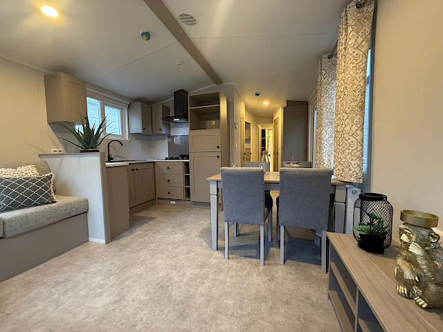Le Flore est un beau mobil-home à l'allure moderne grâce à son revêtement extérieur clair. En outre, le Flore est assez compact dans ses dimensions, mais offre encore beaucoup d'espace et de luxe à l'intérieur. Vous trouverez un salon confortable avec de nombreux sièges, une belle cuisine en U pour de délicieux repas, 2 chambres à coucher et une belle salle de bain. Curieux de découvrir ce modèle ? N'hésitez pas à vous rendre dans notre agence pour découvrir ce que le Flore a à vous offrir.