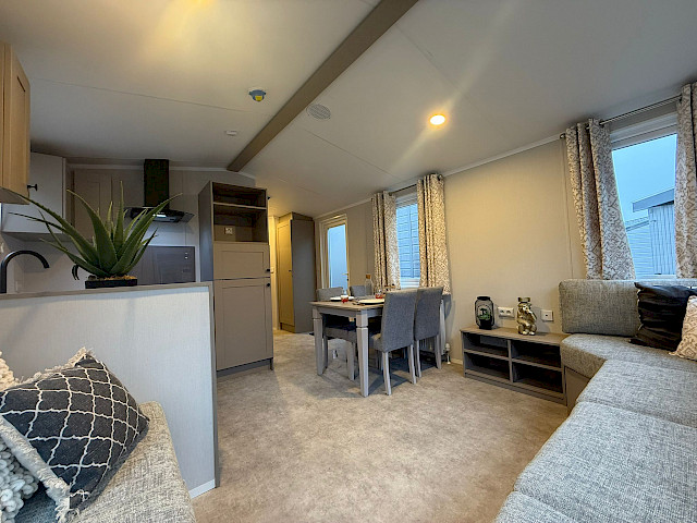 Le Flore est un beau mobil-home à l'allure moderne grâce à son revêtement extérieur clair. En outre, le Flore est assez compact dans ses dimensions, mais offre encore beaucoup d'espace et de luxe à l'intérieur. Vous trouverez un salon confortable avec de nombreux sièges, une belle cuisine en U pour de délicieux repas, 2 chambres à coucher et une belle salle de bain. Curieux de découvrir ce modèle ? N'hésitez pas à vous rendre dans notre agence pour découvrir ce que le Flore a à vous offrir.