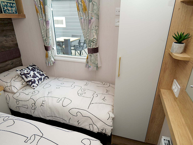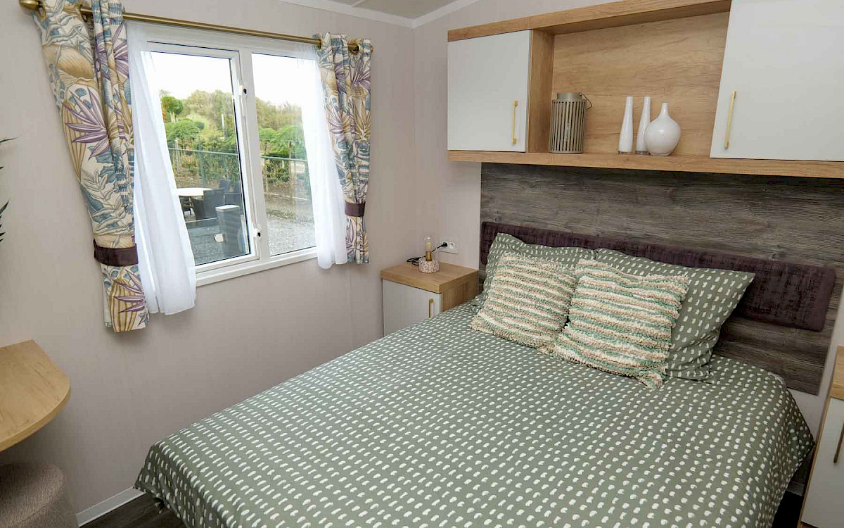 Le Swift Bordeaux est meublé avec beaucoup de style, un logement de vacances qui n'est pas seulement à la mode mais aussi très pratique. Le salon du Bordeaux est très lumineux grâce aux grandes portes coulissantes situées à l'avant du chalet. Il y a également une cuisine en U luxueuse avec de jolis détails et des meubles confortables. Le Bordeaux est disponible avec 2 ou 3 chambres à coucher et, bien sûr, une belle salle de bains. Le Swift Bordeaux est le chalet de loisirs idéal pour créer de beaux souvenirs avec votre bien-aimé(e).