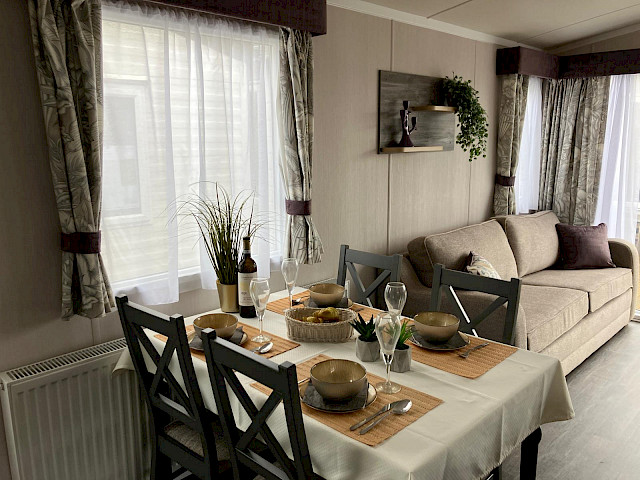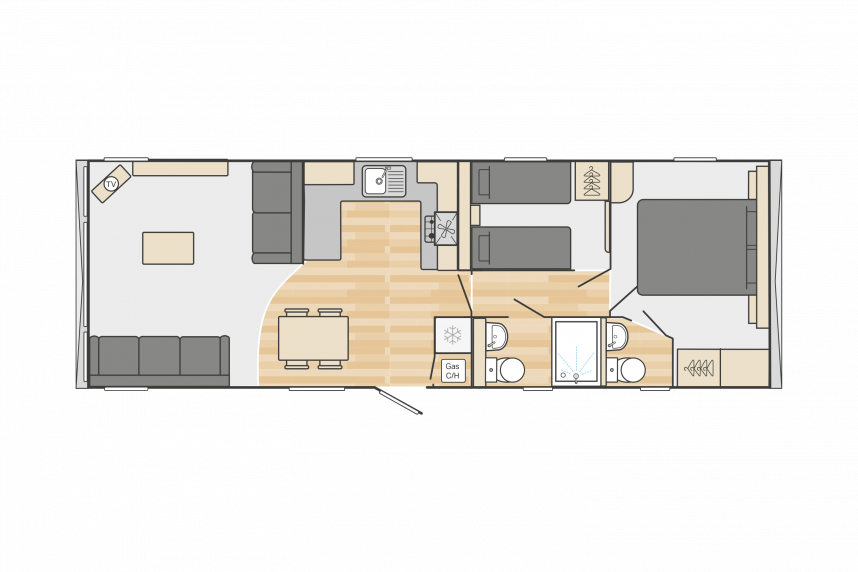 Le Swift Bordeaux est aménagé avec beaucoup de style, un hébergement de vacances qui est non seulement tendance, mais aussi très pratique. Le salon du Bordeaux est très lumineux grâce aux grandes portes coulissantes à l'avant du chalet. Il dispose également d'une cuisine en U luxueuse avec de beaux détails et un mobilier confortable.  Le Bordeaux est disponible avec une belle salle de bains. Le Swift Bordeaux est le chalet de loisirs idéal pour créer de beaux souvenirs avec vos proches.