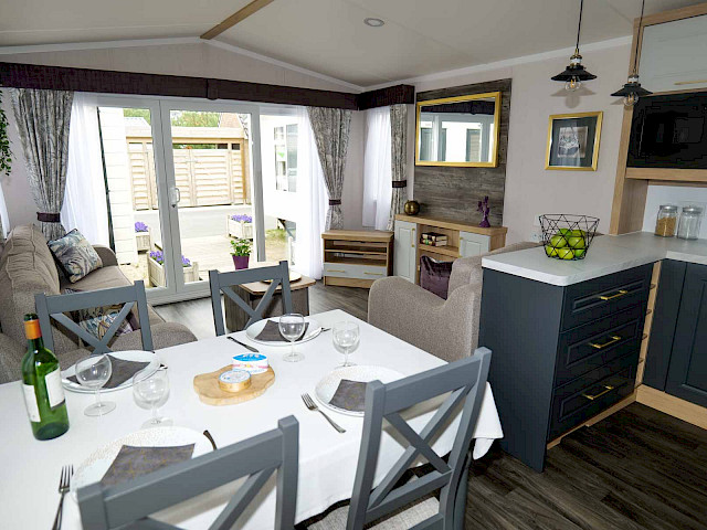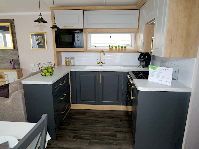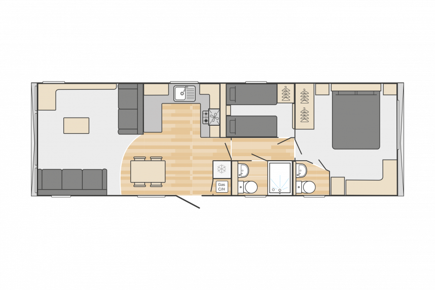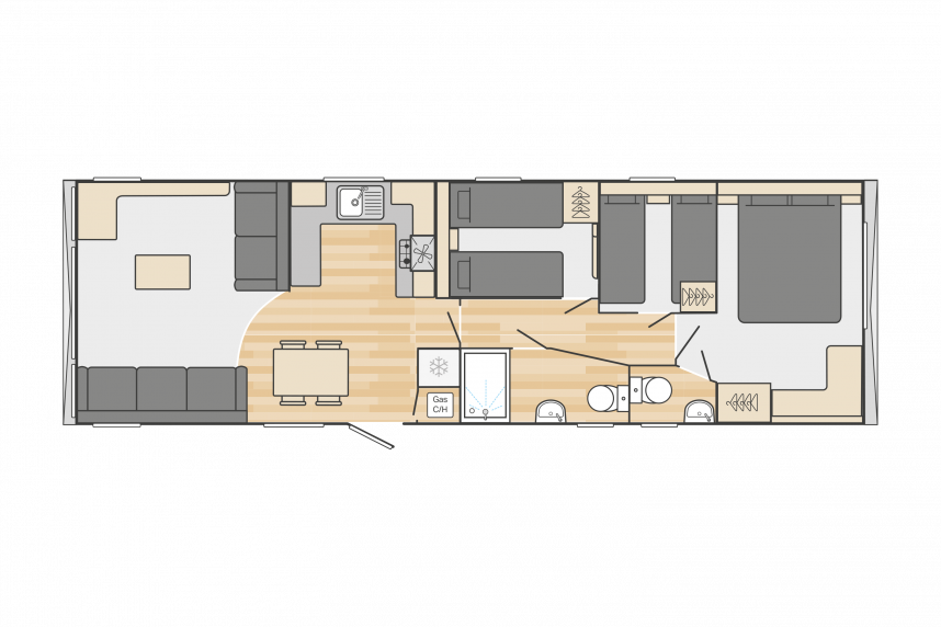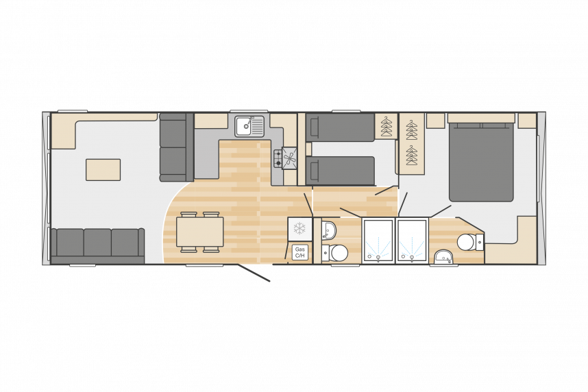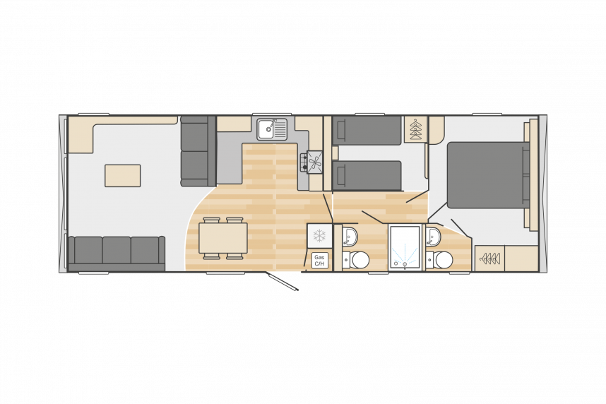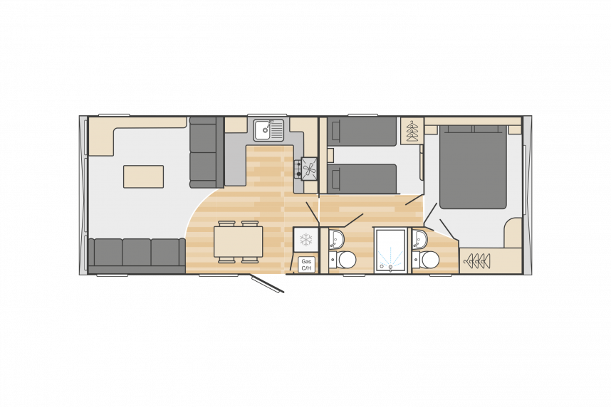 Le Swift Bordeaux est meublé avec beaucoup de style, un logement de vacances qui n'est pas seulement à la mode mais aussi très pratique. Le salon du Bordeaux est très lumineux grâce aux grandes portes coulissantes situées à l'avant du chalet. Il y a également une cuisine en U luxueuse avec de jolis détails et des meubles confortables.  Le Bordeaux est disponible avec 2 ou 3 chambres à coucher et, bien sûr, une belle salle de bains. Le Swift Bordeaux est le chalet de loisirs idéal pour créer de beaux souvenirs avec votre bien-aimé(e).