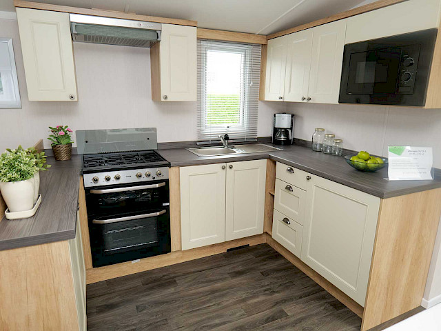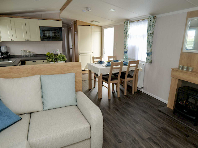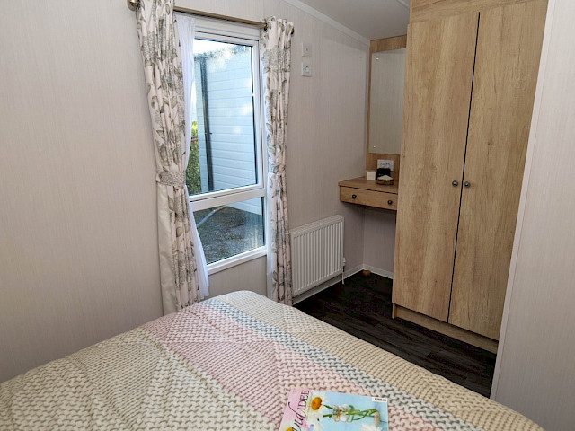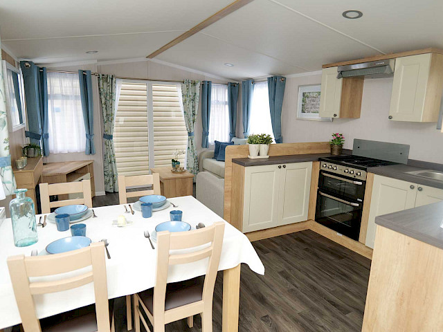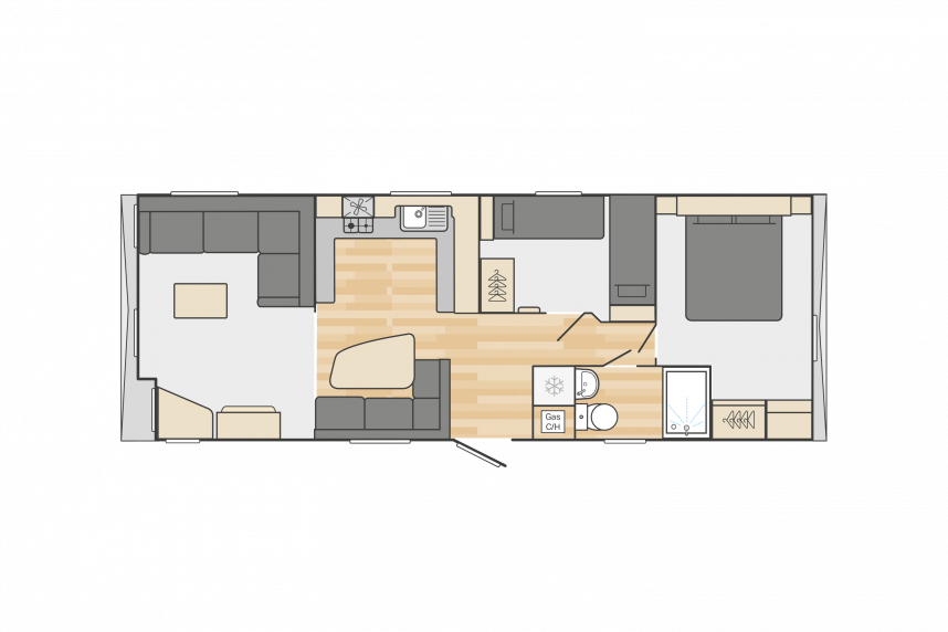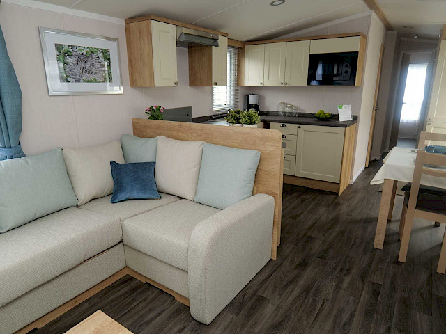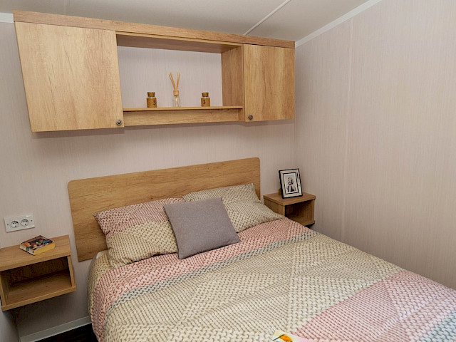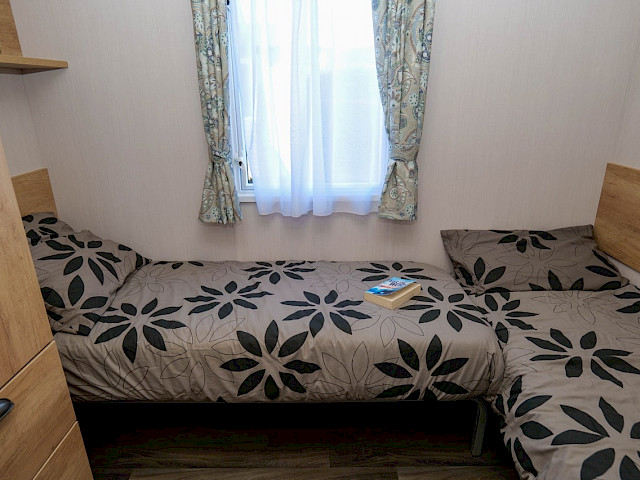 Le Swift Burgundy a un design intemporel et pratique. Le rembourrage botanique et les portes de jardin à l'avant de ce chalet de vacances font entrer la nature de l'extérieur. Le Burgundy n'est donc pas l'un des modèles de loisirs les plus populaires de Swift pour rien. L'agréable salon avec cheminée électrique et la spacieuse cuisine en U constituent un cadre de vie idéal pour votre séjour de vacances. Les chambres sont équipées de matelas de luxe et dans la petite chambre, un lit peut être rangé sous l'autre pour plus d'espace. Vous êtes curieux de découvrir ce modèle ? N'hésitez pas à visiter notre site d'exposition et à découvrir ce modèle.