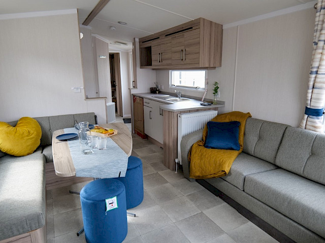 La Loire est légère, amusante, fonctionnelle et inspirée par la côte. Vous avez le choix entre des modèles de 10 et 11 mètres de long. La Loire est vraiment un chalet de loisirs pour les familles et offre un bon rapport qualité-prix, ainsi que des options très étendues. Dans le salon, par exemple, vous trouverez une grande banquette d'angle qui peut également être utilisée comme canapé-lit. La cuisine spacieuse est équipée de solides poignées en acier inoxydable et d'appareils électroménagers de luxe. Les chambres sont équipées de matelas de luxe et d'une connexion TV. Vous êtes curieux ? Vous êtes le bienvenu pour venir voir ce modèle dans notre salle d'exposition.