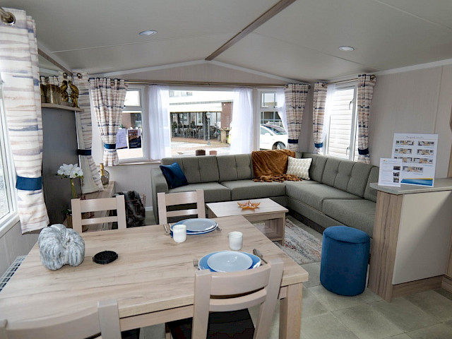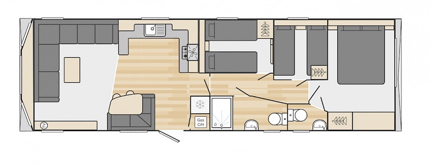 Le Loire est léger, ludique, fonctionnel et inspiré par le littoral. Vous avez le choix entre des modèles de 10 et 11 mètres de long. La Loire est vraiment un chalet de loisirs familial, avec un bon rapport qualité/prix et des possibilités très étendues. Dans le salon, par exemple, vous trouverez une banquette d'angle spacieuse qui peut également être utilisée comme canapé-lit. La cuisine spacieuse est équipée de solides poignées en acier inoxydable et d'appareils électroménagers de luxe. Les chambres sont équipées de matelas de luxe et d'une connexion TV. Vous êtes curieux ? N'hésitez pas à venir voir ce modèle dans notre showroom.