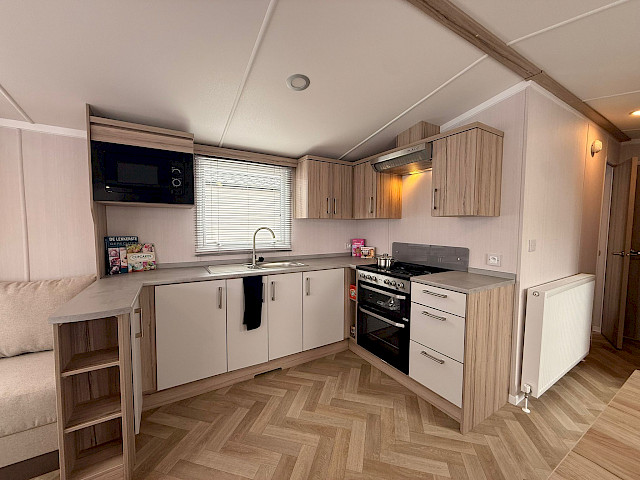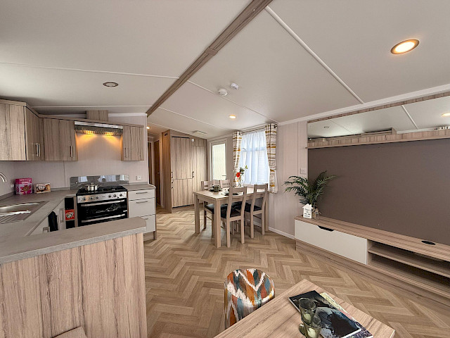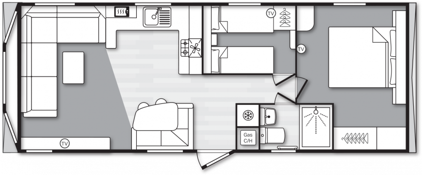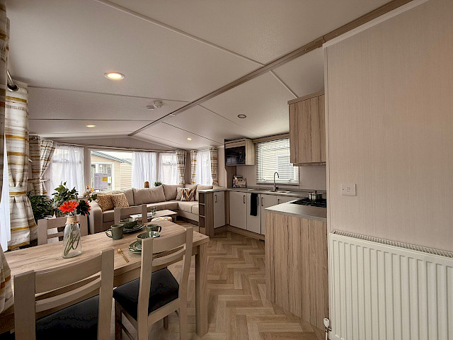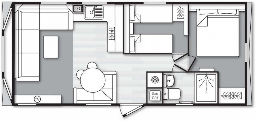 Dès que vous entrez dans le Swift Loire, vous êtes immédiatement frappé par son espace et son ouverture. Le salon communique avec le coin repas et la cuisine, ce qui vous permet de passer du temps ensemble facilement, même lorsque chacun vaque à ses occupations. Le Loire vous est livré entièrement meublé, avec un grand canapé d'angle, une table à manger avec banquette intégrée et tout ce dont vous avez besoin pour en profiter immédiatement. La cuisine est agencée en L ou en U, selon la taille du modèle, et est équipée d'une cuisinière, d'un four, d'un micro-ondes et d'un réfrigérateur-congélateur. Le salon dispose également d’un lit escamotable, pratique lorsqu’une personne passe la nuit sans que cela ne perturbe l’usage quotidien. L’agencement est pensé pour la vie en communauté, avec suffisamment d’espace de rangement, de belles chambres et, sur les modèles plus grands, même des toilettes séparées, ce qui est particulièrement appréciable lorsque vous séjournez à plusieurs.