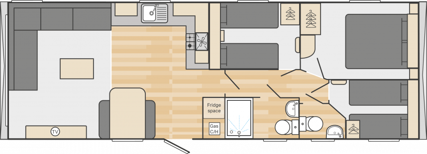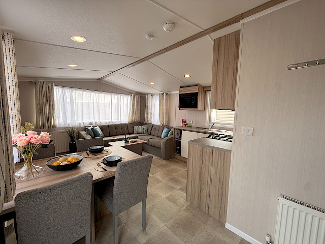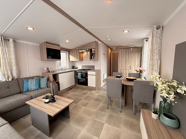 Le Swift Royan offre une combinaison parfaite de style et d'espace pratique, entièrement meublé et prêt à l'emploi. Le salon, la salle à manger et la cuisine à aire ouverte créent une atmosphère chaleureuse, tandis que des solutions de rangement intelligentes et une sellerie moderne garantissent un confort optimal. Les matelas confortables garantissent une bonne nuit de sommeil. La cuisine est bien équipée avec une plaque de cuisson au gaz à 4 feux, un four, un réfrigérateur-congélateur et un espace pour installer un four à micro-ondes. Le Royan est idéal pour ceux qui recherchent un hébergement de vacances confortable et abordable.