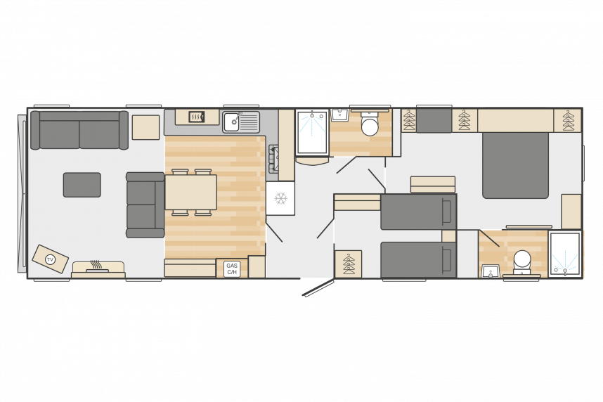 Le Swift Vendee est une maison de vacances très luxueuse, tant à l'intérieur qu'à l'extérieur. Le Vendee est étonnamment spacieux avec son grand salon, son hall d'entrée avec portemanteau et canapé, sa chambre principale avec salle de bain attenante et sa deuxième chambre. Après avoir pénétré dans le hall d'entrée spacieux, vous entrez dans le luxueux salon-salle à manger sur la gauche. Les canapés sont merveilleusement moelleux et offrent un confort ultime. Le salon dispose également d'une télévision et d'une luxueuse cheminée électrique. La belle cuisine avec des détails en cuivre est richement équipée avec, entre autres, un réfrigérateur-congélateur intégré, un four à micro-ondes et un casier à vin intégré ! Ce chalet de vacances dispose de 2 chambres à coucher et de 2 salles de bains complètes. Ainsi, vous pouvez facilement accueillir quatre personnes en vacances.