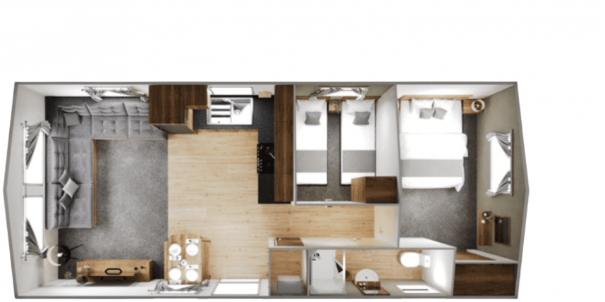 L'Ellerton a été soigneusement conçu pour optimiser l'espace disponible au sol, afin d'offrir suffisamment de place pour toute la famille. La cuisine pratique en L offre beaucoup d'espace pour cuisiner ensemble, tandis que l'espace de vie ouvert vous permet de rester en contact avec votre famille ou vos amis. Les chambres offrent tout ce dont vous avez besoin : un lit confortable et suffisamment d'espace de rangement pour vos vêtements et vos effets personnels.