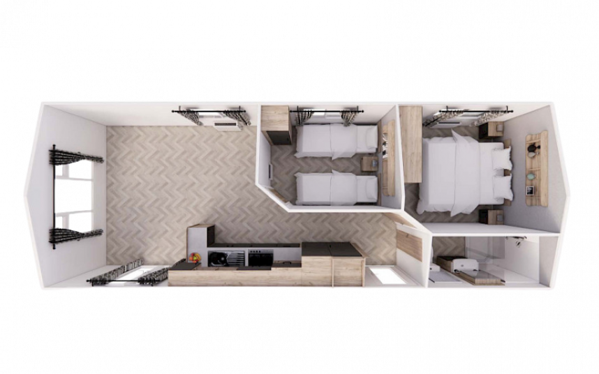 Avec le Willerby Lumic, vous profitez d’un excellent rapport qualité-prix. Ce mobil-home est disponible en trois versions de 10, 11 et 11,50 mètres. Les modèles de 10 et 11 mètres disposent de 2 chambres confortables, tandis que la version de 11,50 mètres est équipée de 3 chambres, idéale pour les familles nombreuses ou pour accueillir des invités.