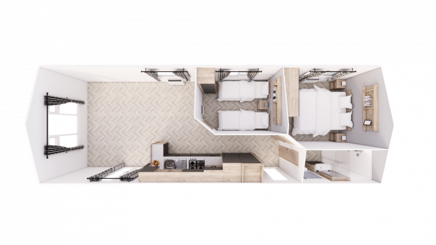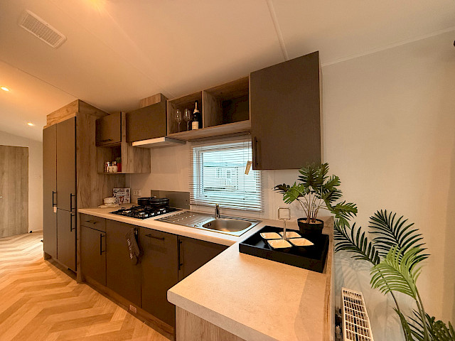 La palette de couleurs moderne de l’intérieur, la cuisine spacieuse avec cuisinière à gaz et la possibilité d’ajouter des options telles qu’un lave-vaisselle font du Lumic un choix élégant et complet pour les amateurs de confort et de luxe. De plus, le Lumic est doté du label GreEN Standard exclusif de Willerby, garantissant une consommation d’énergie réduite jusqu’à 28 %.