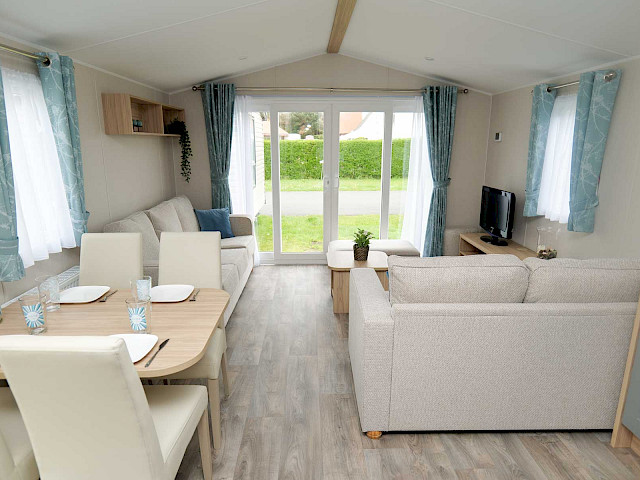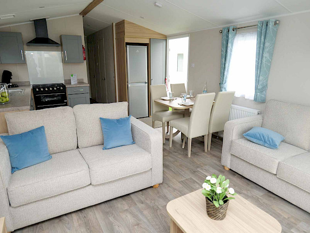 Le Willerby Malton est tout nouveau dans notre gamme. Un modèle frais avec un revêtement extérieur bleu-gris et de solides tuyaux d'évacuation noirs. Ce Malton dispose de deux chambres et est entièrement équipé. Il est l'un des rares à disposer d'une connexion TV dans les deux chambres et bien sûr dans le salon. Vous pouvez donc regarder la télévision dans chaque pièce.