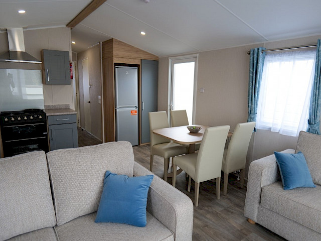 Le Willerby Malton est tout nouveau dans notre gamme. Un modèle frais avec un revêtement extérieur bleu-gris et de solides tuyaux d'évacuation noirs. Ce Malton dispose de deux chambres et est entièrement équipé. Il est l'un des rares à disposer d'une connexion TV dans les deux chambres et bien sûr dans le salon. Vous pouvez donc regarder la télévision dans chaque pièce.