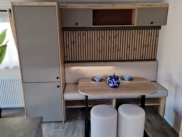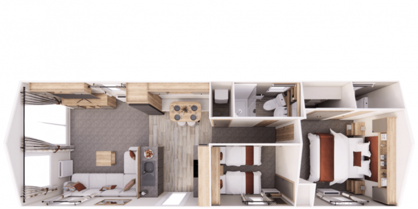 Le Willerby Rio est une caravane résidentielle moderne et élégante qui allie parfaitement confort et praticité. Grâce à son agencement intelligent, l’espace de vie est lumineux et accueillant, avec un grand canapé d’angle et de larges fenêtres laissant entrer beaucoup de lumière naturelle. La cuisine est fonctionnelle et équipée d’appareils modernes, tandis que le coin repas est idéal pour partager de bons moments en famille ou entre amis. Les deux chambres offrent calme et confort, avec une chambre principale spacieuse dotée de nombreux rangements et une seconde chambre parfaite pour les invités ou les enfants. Le Willerby Rio est une solution élégante et abordable pour ceux qui recherchent une résidence secondaire tout confort.