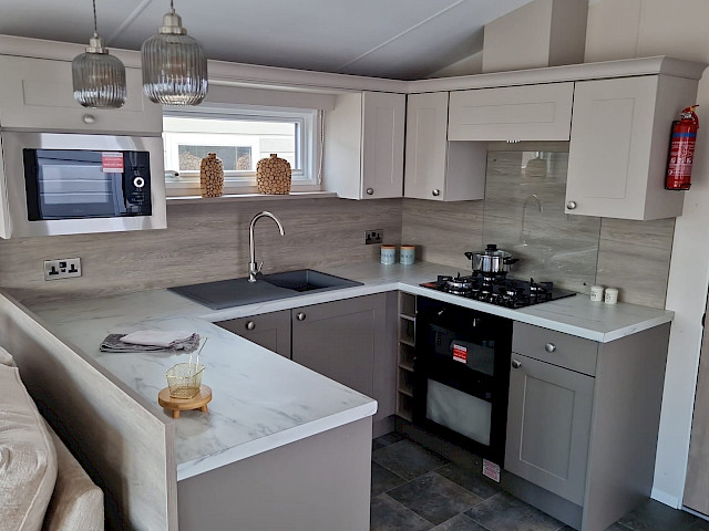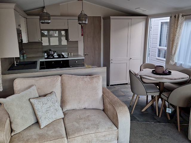 Willerby Salisbury est un mobil-home pratique et confortable, au look moderne et neutre. L'utilisation de matériaux doux et de couleurs apaisantes rend l'intérieur agréable et accueillant.